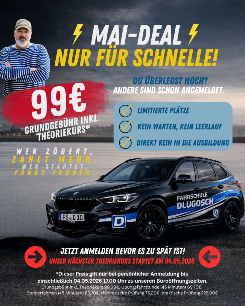 Seit Jahrzehnten ist die Fahrschule Dlugosch in Freising ein Begriff. Egal ob E-Bike, E-Car oder Auto – wir machen mobil.